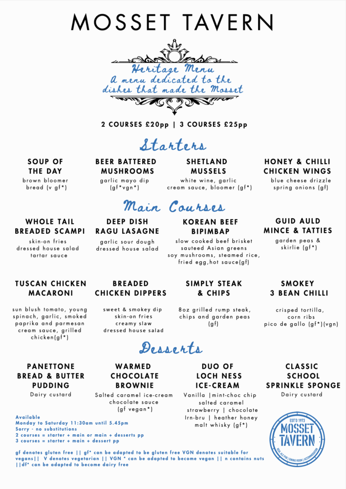 The Heritage Menu is a selection of tasty pub classics at a very tasty price (perfect for these topsy-turvy times) offering a two-course lunch or early-evening supper.